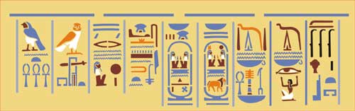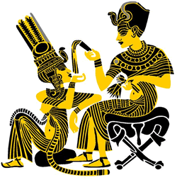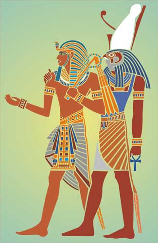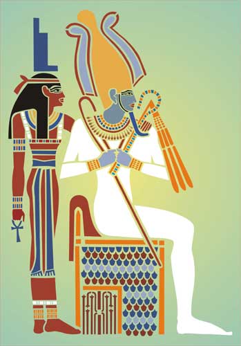 Large Mural with a Throned Osiris, Isis, Tut and Horus